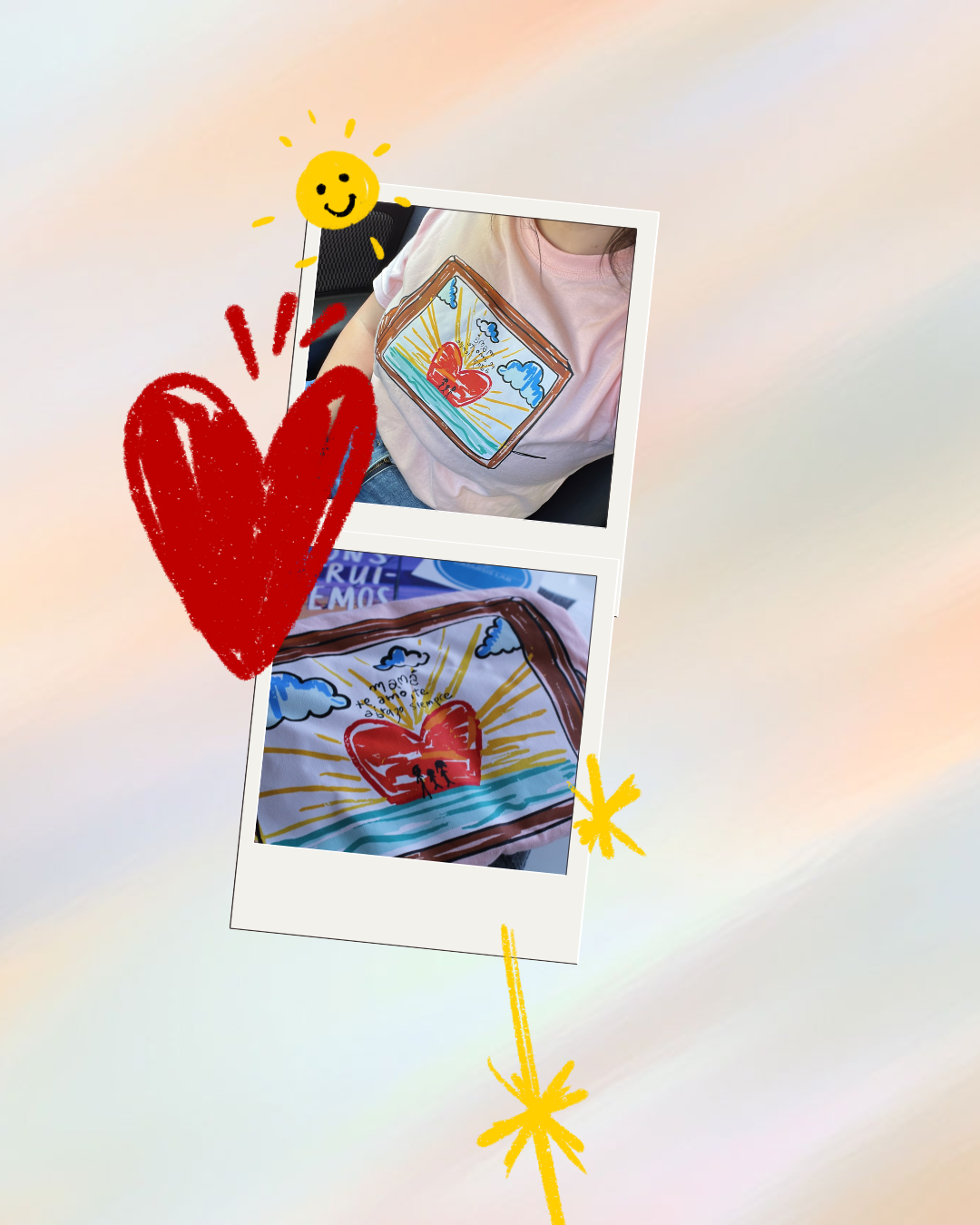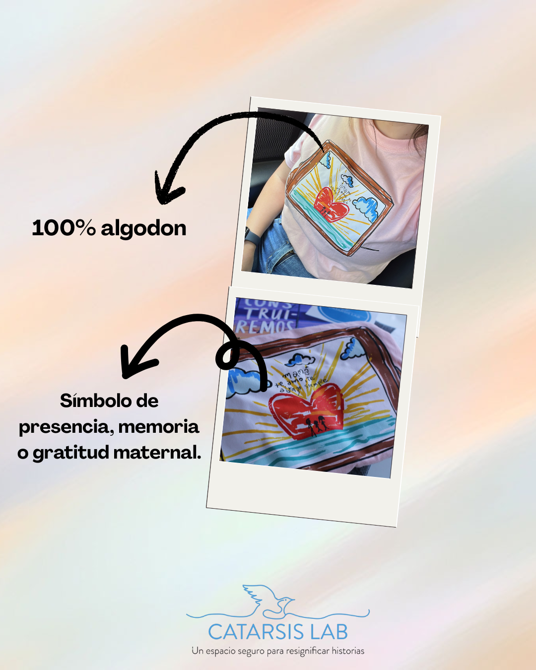 En el centro, un corazón que no solo late, sino que guarda una imagen sagrada: la presencia viva de ese hijo que transforma todo. Porque en cada fibra de esta camiseta habita la memoria del amor incondicional, ese que no exige, solo abraza.